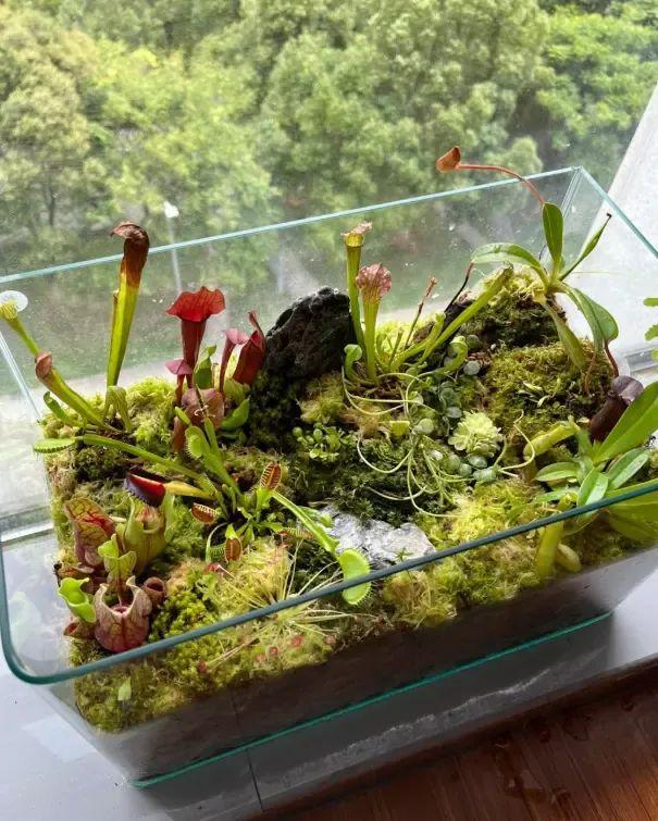 有很多非常喜欢食虫植物的朋友,家里专门养的,不同品种的捕蝇草放在一起也是很美观的,确实很漂亮,养护的难度也确实很高,并且需要定期的喂食,要抓昆虫,苍蝇,蚊子进行喂食,喂食的过程,也是补充养分的过程。